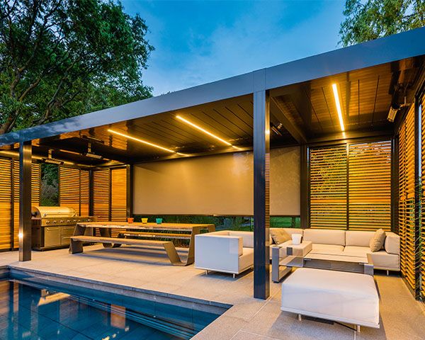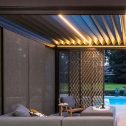 Integrate your pergolas with home automation for seamless control of sound, lighting, heating, and retractable features. Compatible with smart home platforms like Crestron or Lutron.